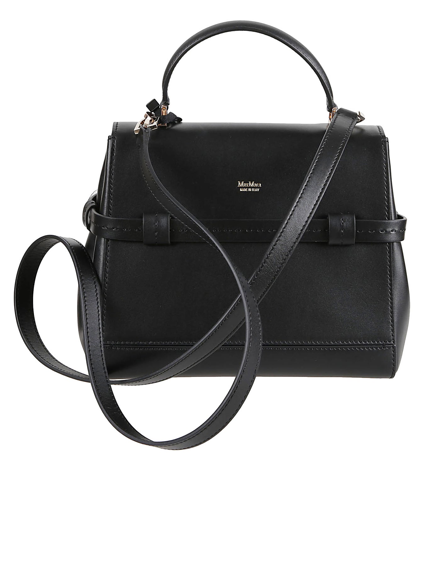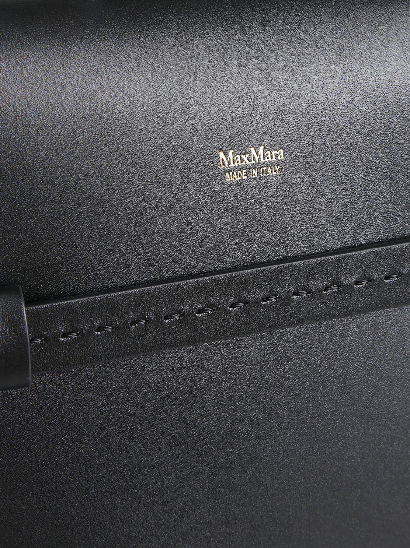 Borsa Margaux medium in pelle di vitello liscia naturale Volume capiente Fianchi ripiegabili Tracolla rimovibile in dotazione Interno in nappa con tasca zip e tasca a toppa Doppio manico a mano e a spalla Chiusura a patta con girello in metallo Lettering Max Mara stampato sul davanti e in metallo sul retro Cinturino con puntino sartoriale e piedini in metallo sul fondo Colore: nero