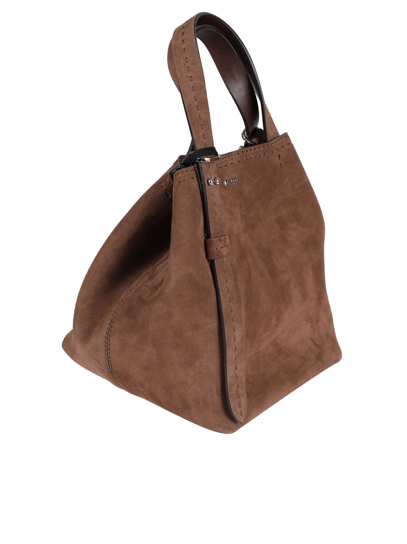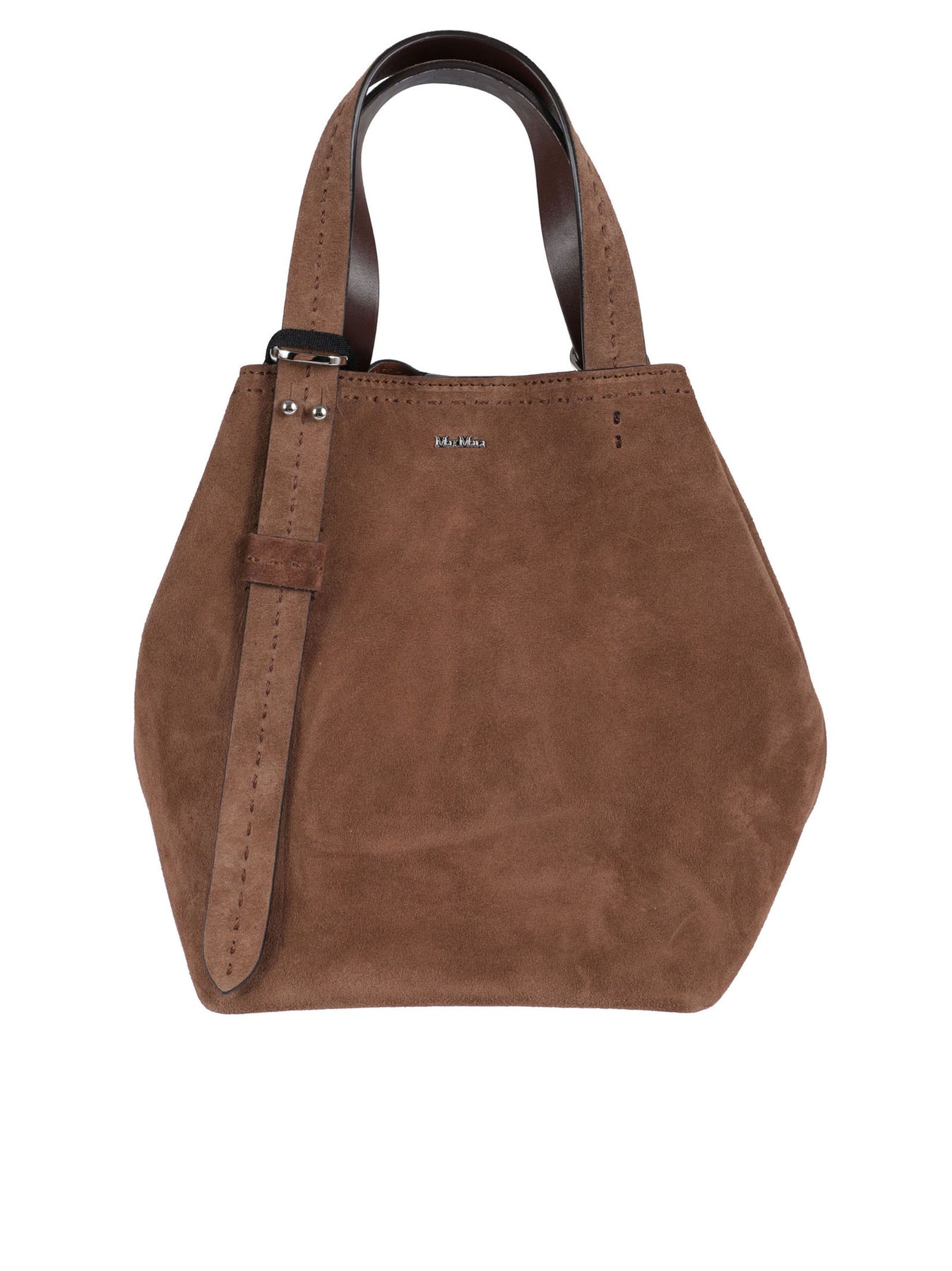 Borsa a mano o a braccio in crosta di vitello Rifinita con puntino sartoriale e logo Max Mara in metallo nella parte anteriore Doppio manico regolabile con nottolini Tracolla rimovibile in dotazione Interno in pelle con piccola tasca a toppa Fondo con piedini in metallo Chiusura con bottone a calamita Colore: marrone scuro