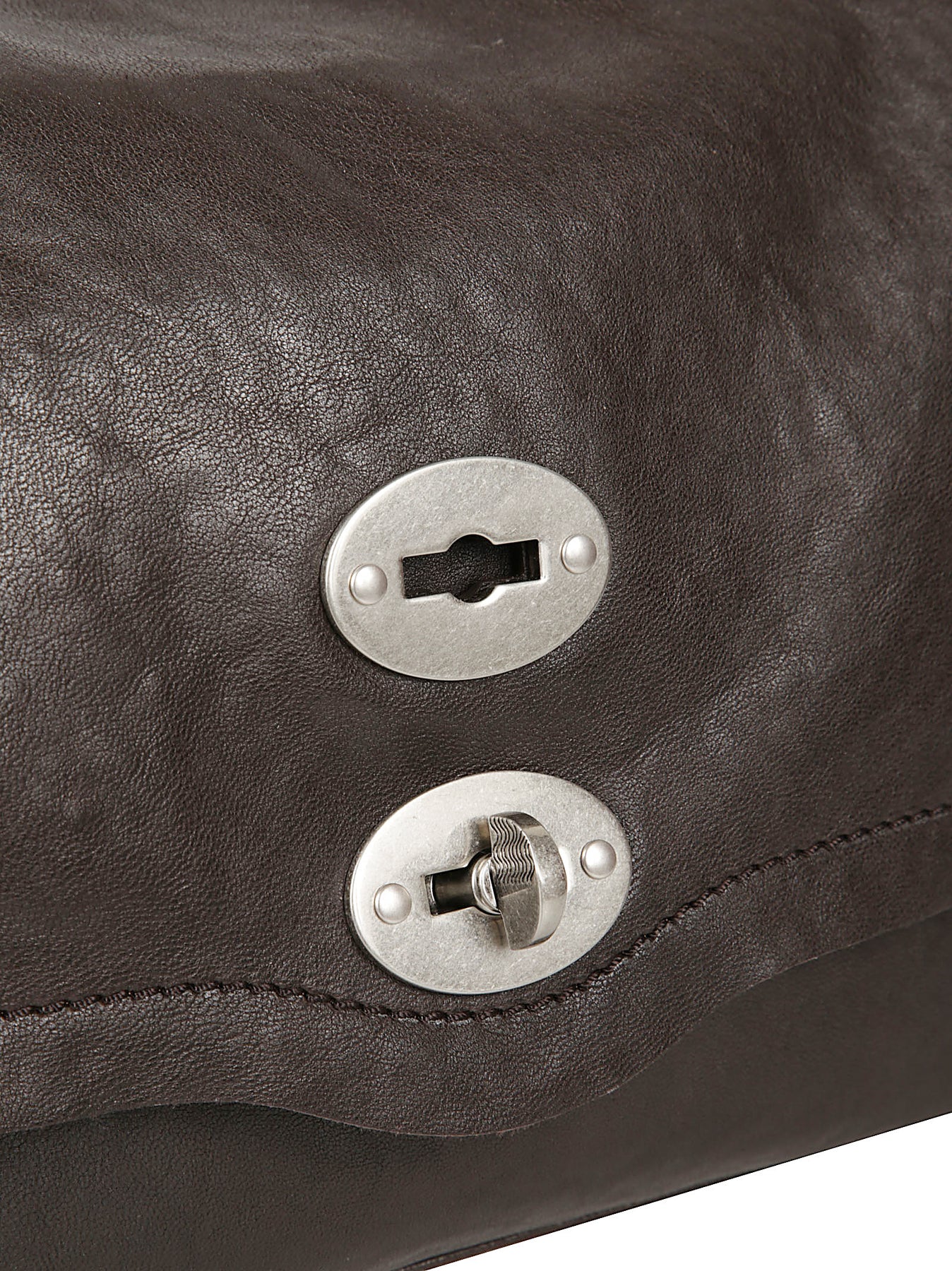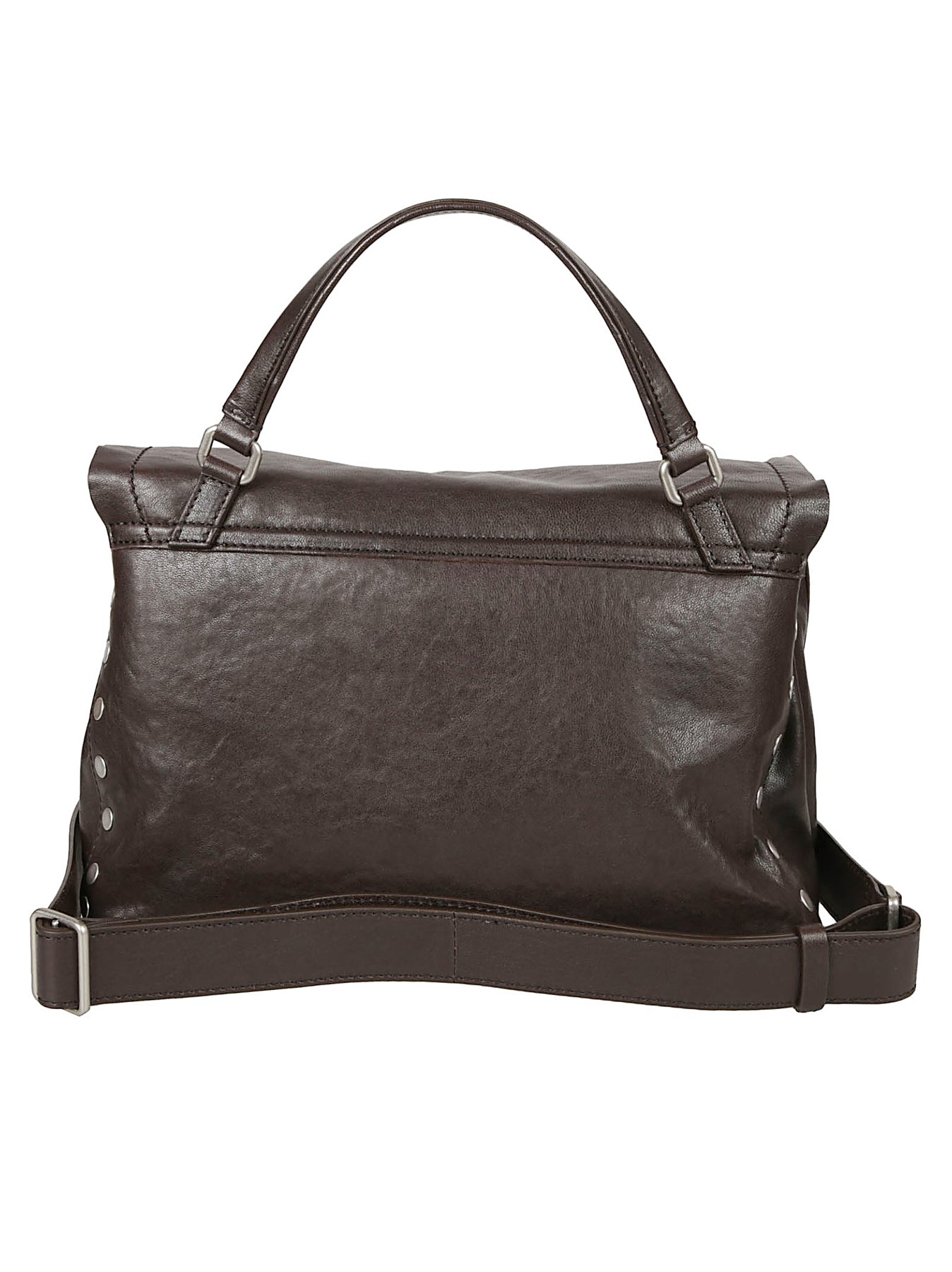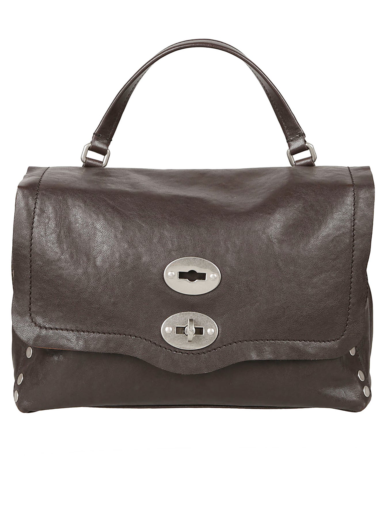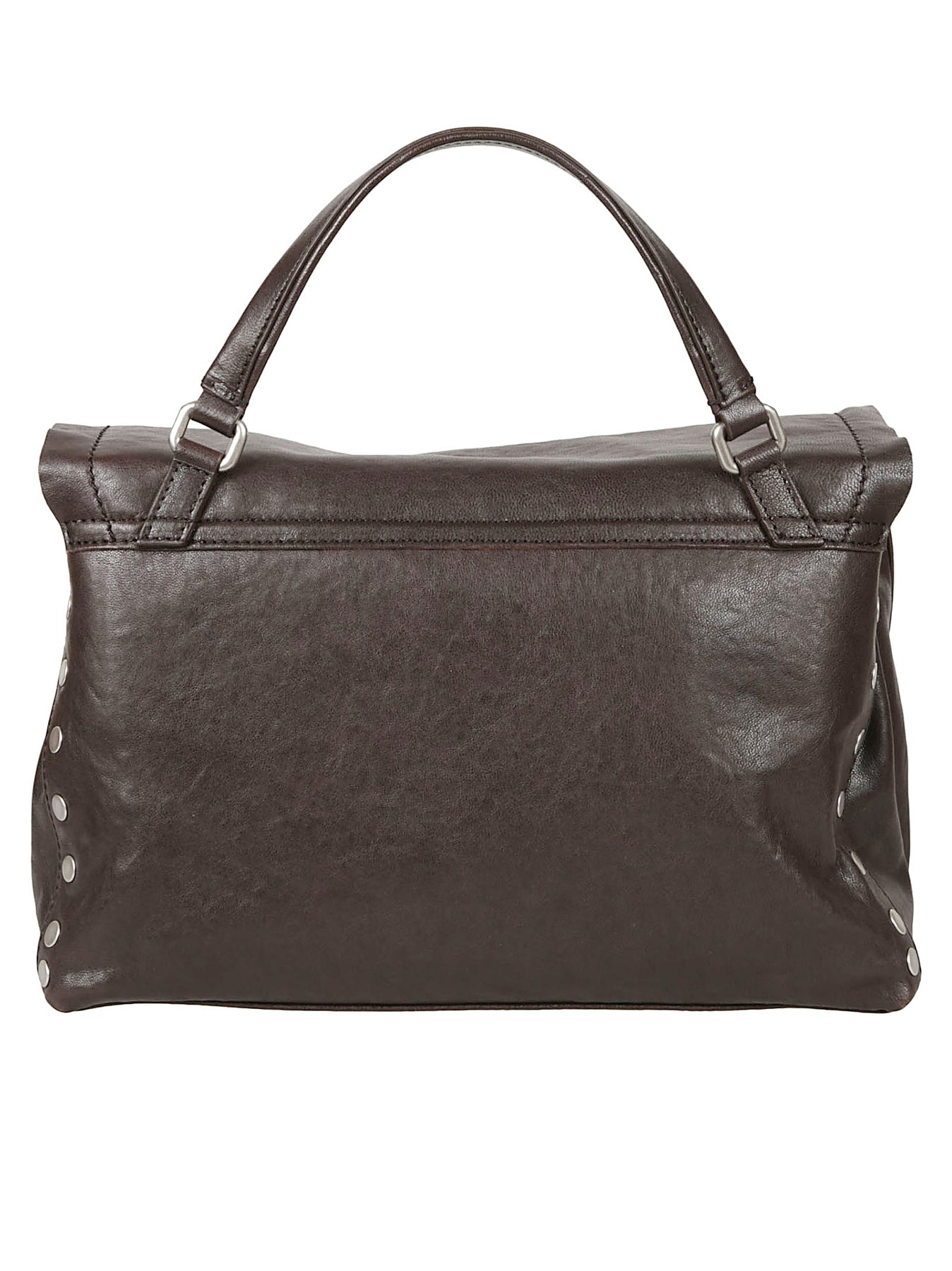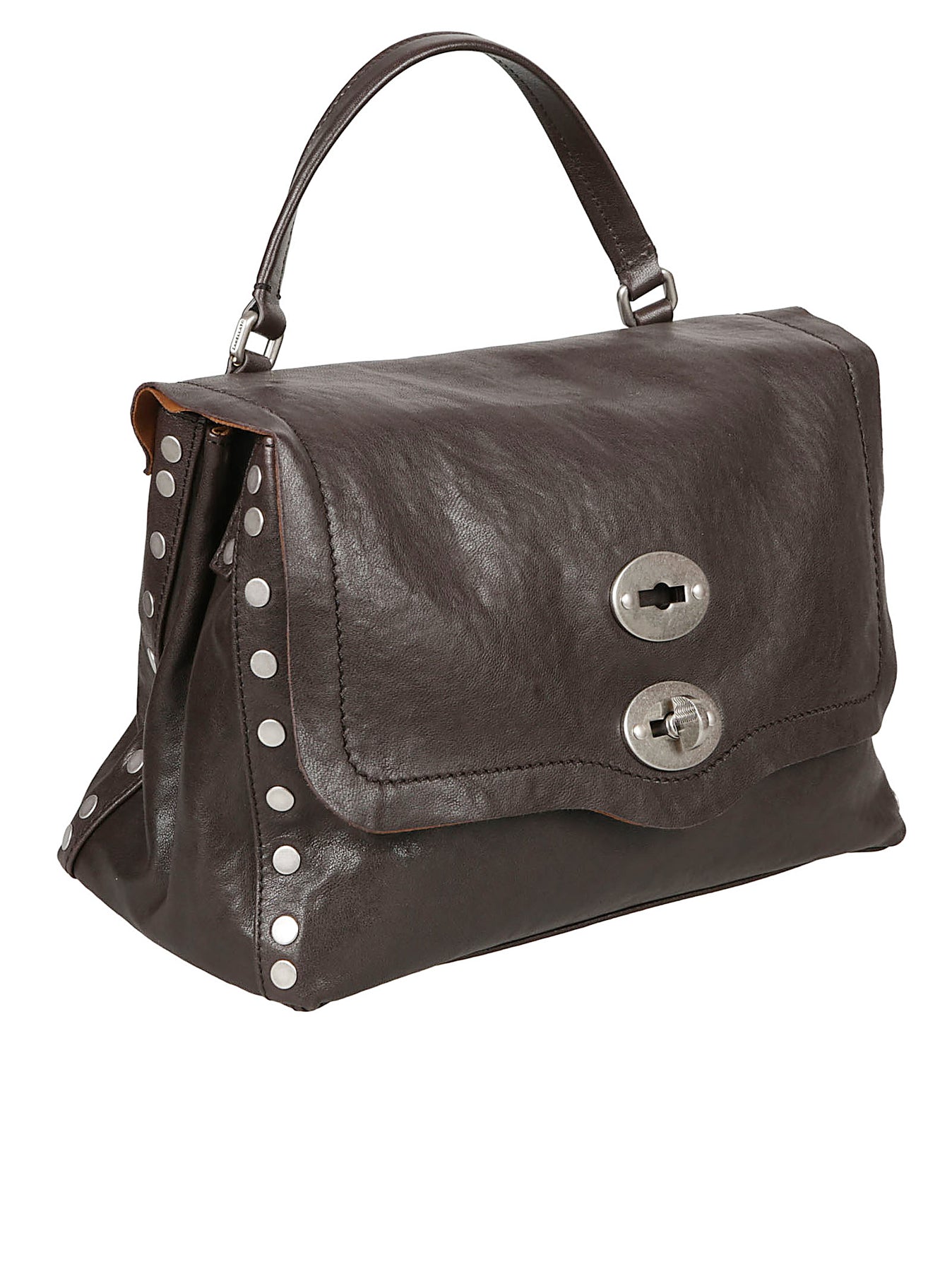 Borsa in pelle di agnello Manico superiore fisso Tracolla regolabile e removibile in dotazione Chiusura a girello, Due scomparti interni principali Tasca interna con zip e tasca interna piatta Fodera in tessuto Dust bag inclusa Colore: marrone carbone
