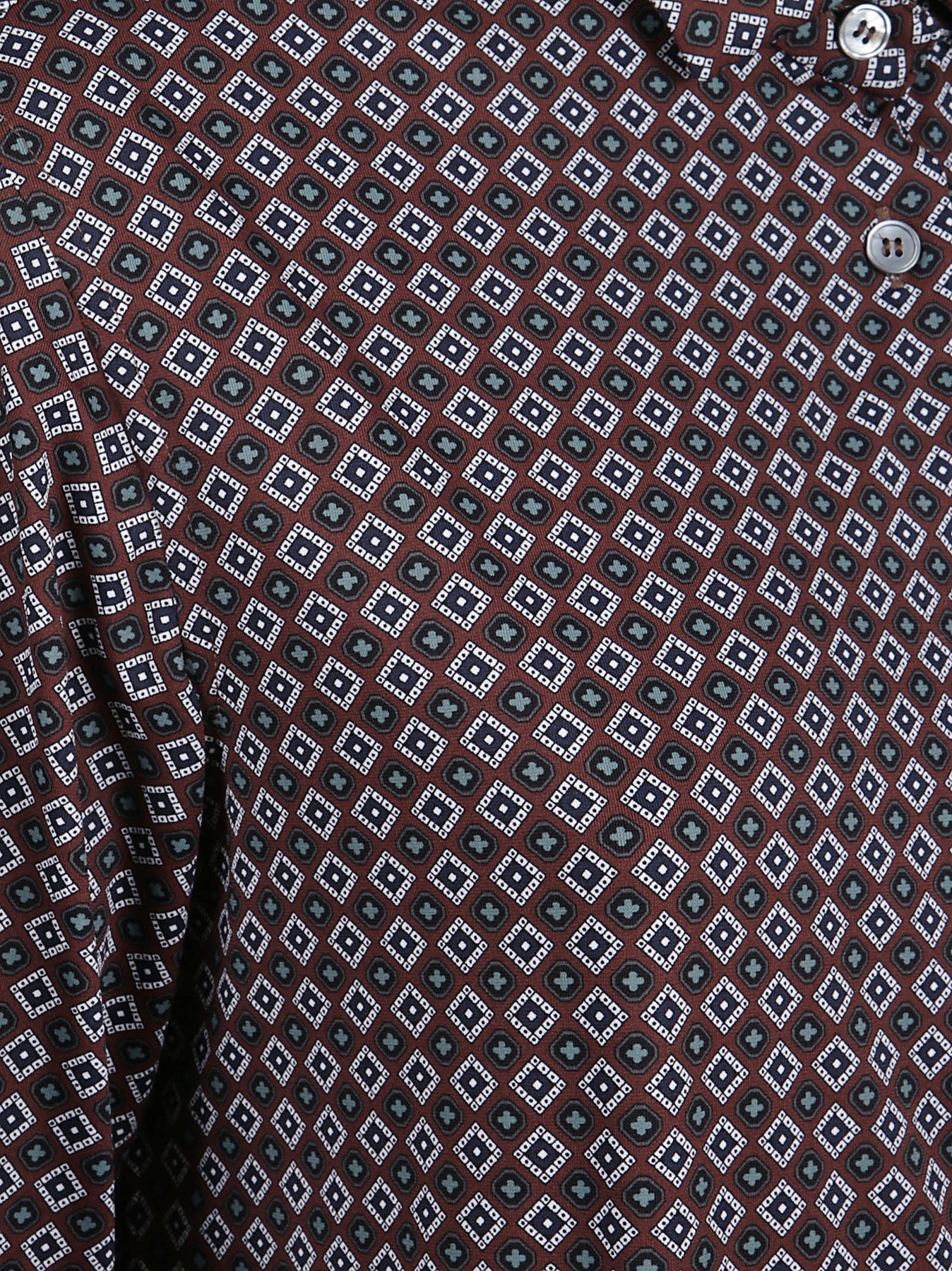 Colore: fantasia geometrica sui toni bordeaux - bianco - nero - verde